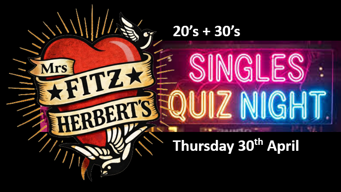 Quiz Dating / Singles Quiz Night - Thursday 30 April @ Mrs Fitzherbert's, Brighton (Ages 20's + 30's)